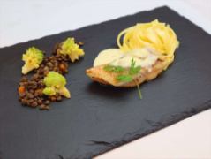 魚料理 九州産季節の魚ソテー レンズ豆の煮込み レモンクリームソース