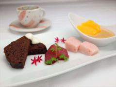 デザート オレンジショコラ 季節のフルーツ プティフール コーヒー o r 紅茶
