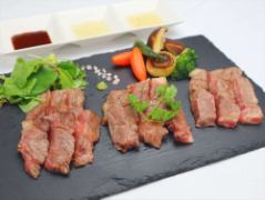 焼き物のステーキが3種の熊本ブランド和牛食べ比べになります。